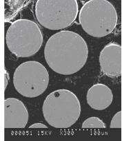 The SiO2 powder spheroidised by induction plasma (air plasma), output 15~20 kg/h