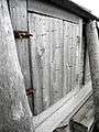 Surrounded by whale bones stands a wooden cabin, Bamsebu, which is still in use. The door and the windows have long protruding nails to prevent bears from breaking them. Near the cabin are a small store house and an overturned wooden boat (named Kjeftausa) that was used for shelter and storage. On the beach are three smaller wooden boats, also overturned.[2][3]