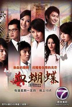 Injustice (血蝴蝶) is the 18th co-production of MediaCorp TV and ntv7. It was aired every Monday to Thursday, at 10:00pm on Malaysian Chinese language channel ntv7.[1] This drama started airing on 23 August and ended on 4 October 2010. This will be the third Malaysian series to be screened on Channel U after The Thin Line and Addicted to Love when it debuts on 9 Nov 2012, weekdays at 6 pm.