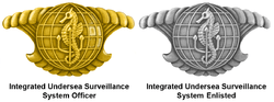 The Integrated Undersea Surveillance System breast insignia is a military badge of the United States Navy which was officially created by OPNAVINST 1020.5 dated 24DEC90. The insignia is awarded to those personnel who have been trained and qualified in naval sonar and undersea surveillance technology.