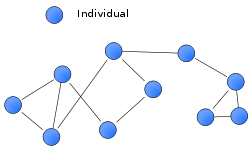 In social network theory, social relationships are viewed in terms of nodes and ties. Nodes are the individual actors within the networks, and ties are the relationships between the actors. There can be many kinds of ties between the nodes. In its simplest form, a social network is a map of all of the relevant ties between the nodes being studied.