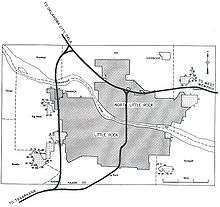 Early plans for the Interstate Highway System include a route along roughly the same alignment as the present Interstate 30 (I-30) through the Little Rock area, but are not detailed enough to show exactly how the cities would be served.[3] Later, in 1955, a map of the Interstate Highway's plans shows a complete beltway around Little Rock, including present-day I-430, I-440 and Highway 440 (AR 440).[4] When preliminary urban routes were laid out in 1955, the beltway was shortened to the current route of I-430.[5]