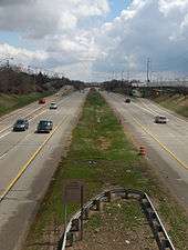 An east–west freeway was originally planned as an Interstate Highway allowing traffic to access downtown Lansing in the 1955 General Location of National System of Interstate Highways (Yellow Book), an early proposal for what would become the Interstate Highway System.[13] As originally proposed by the Michigan State Highway Department in 1958, the freeway was to be called I-296.[14] The department was waiting on approval of a final numbering scheme the next year,[15] before the first Interstates were signed in the state in 1959.[16] By the time construction started on the Lansing freeway, it was numbered I-496.[17]