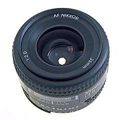 A 35 mm lens set to f/8; the diameter of the seven-sided entrance pupil, the virtual image of the opening in the iris diaphragm, is 4.375 mm