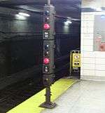 This is one of only three stations in the subway system where a track signal is publicly accessible (the others being Union and Davisville). The signal is at the east end of the platform and guards the switches for trains turning back eastbound from the westbound platform.