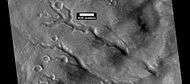 The channel shown below goes quite a long distance and has branches. It ends in a depression that may have been a lake at one time. The first picture is a wide angle, taken with CTX; while the second is a close up taken with HiRISE.[8]
