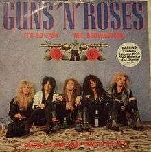 "It's So Easy" is a song by the American rock band Guns N' Roses. It featured on their debut studio album, Appetite for Destruction (1987). The song was released as the band's first single on June 15, 1987, in the UK, where it reached number eighty-four on the UK Singles Chart [1] as a double A-Side with "Mr Brownstone". It was also released in Germany around the same time. The songs "Shadow Of Your Love" and "Move To The City", featured on the 12-inch vinyl and 12-inch picture disc editions of the single, were written by members of Guns N' Roses while in the band Hollywood Rose, and were later released in Japan on the EP Live from the Jungle. "Move to the City" had previously been released in the US on the 1986 EP Live ?!*@ Like a Suicide and was later released worldwide on the album GN'R Lies.