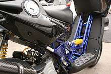 All Dragster marks are based on a space frame, which was obviously designed for more power. The front wheel had the dimensions 120/70–11 and the rear wheel 130/70–12, only the mark 2007 had a 130/60–13 rear wheel. The wheelbase was 1310 mm.[5] The mark Dragster 50 was re-edited in 2007 in addition to the mark Dragster 250. The forkless front suspension was criticised as leading to "non-harmonic and wobbly dynamics at lower speeds."[4] Some critics complained about the noise level of the large water cooled two stroke engine, which had a catalyst: