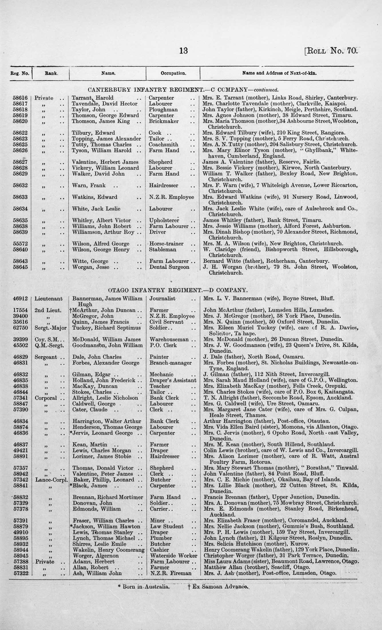 - 1 2 "The Roll of Honour". Otago Daily Times (17206). 8 January 1918. p. 2.