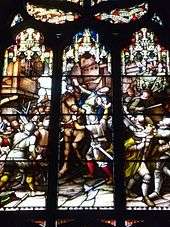 Assassination of the Regent Moray. Victorian stained glass window in St. Giles Kirk, Edinburgh.