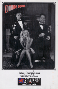 The Jamie, Frosty, and Frank Show was a radio show which ran from 1994 to 1999 on Denver's Alice 105.9 and from 1998 to 1999 on Los Angeles's Star 98.7.[1][2] The show was first hosted by Jamie White, Frosty Stilwell and Frank Kramer.[1]