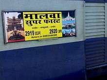 The Malwa Superfast Express is a daily express train service which connects Jammu Tawi in Jammu & Kashmir, India to Indore Junction BG railway station of Indore, the largest city and commercial hub in Madhya Pradesh,