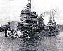 During the Solomon Islands Campaign, eight Japanese destroyers running supplies were surprised by five American cruisers and four destroyers. Despite the loss of one of the flotilla (Takanami), the Japanese launched a torpedo salvo to cover their withdrawal. Of the five U.S. cruisers, one was sunk (USS Northampton) and three (USS Minneapolis, New Orleans, and Pensacola) severely damaged.[18]