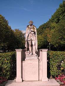 He died on 27 February 1794 in Paris, aged 85. Perronet was elected a Fellow of the Royal Society in 1788.[3] The street next to the site of the École des ponts et chaussées (delimiting Paris's 6th and 7th arrondissements) is now named after him and a statue of him has been erected on the northeast corner of the Île de Puteaux, at the foot of the pont de Neuilly (whose first stone version, built in 1772 and surviving until 1942, was his work).