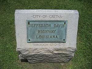- ↑ Verhovek, Sam Howe (February 14, 2002). "Road Named for Jefferson Davis Stirs Spirited Debate". The New York Times. Retrieved October 13, 2013.