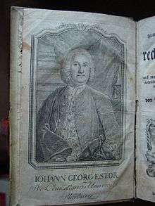 Johann Georg Estor (6 June 1699 – 25 October 1773), was a German theorist of public law, historian and book collector. To his opinion the Roman Law is strange to the original German law-culture and must be considered as a foreign body.