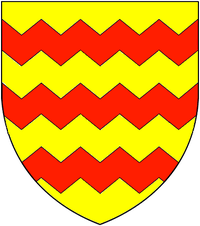 - ↑ These arms of Willington a saltire vair are shown on the tomb in Barcheston Church, Warks., of William Willington (died 1555), of Willington manor and his wife Anne, whose alabaster effigies lie on top of the tobm (Victoria County History, Vol.5, Warwickshire, Kington Hundred). Also same arms listed in Heralds' Visitation of Warwickshire, 1619 (Wellington de Hurley): Gules, a saltire vair. The Dering Roll of Arms lists the arms of "Rauf de Wiltone" as Gules, a saltire vair. Tristram Risdon in his Survey of Devon (1630) gives the arms of Willington of Umberleigh apparently incorrectly as: Party per pale dente argent and gules, a chief or (1810 edition, p. 317) and these arms are shown in 19th-century stained glass in Atherington Church impaling the arms of Champernowne: Gules, a saltire vair between 12 billets or