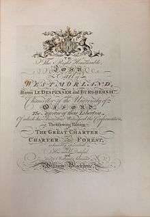 - Blackstone, William (1759). The Great Charter and Charter of the Forest, with other Authentic Instruments: To which is Prefixed an Introductory Discourse, Containing the History of the Charters. By William Blackstone, Esq; Barrister at Law, Vinerian Professor of the Laws of England, and D.C.L. Oxford: Clarendon Press. OCLC 4547269.