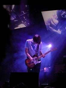 Greenwood has long used a rewired Fender Telecaster Plus with Lace Sensor pickups; his other guitars include a mid-seventies Fender Starcaster and a Gibson Les Paul.[13][70] He is known for his aggressive playing style; in the 1990s, his playing gave him repetitive stress injury, necessitating a brace on his right arm, which he likened to "taping up your fingers before a boxing match."[75] He often uses effect pedals[14] and sometimes plays with a violin bow.[14] He dislikes the reputation of guitars as something to be "admired or worshipped", saying he sees them as a tool like a typewriter or a vacuum cleaner.[30][70]