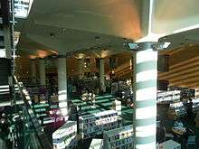 Some internal design features have been criticised. Only a single staircase on one side of the building connects the three storeys. It leads into "claustrophobic" corridors which contrast with the open spaces of the main building. The large internal space also makes the stock displays appear modest.[29] The shelving units have been described as "awful"[5] and "well below the design quality" of the rest of the library.[29] The opening hours were considered inadequate by some, but were later extended.[33][34]