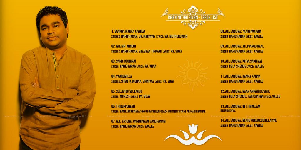 - 1 2 "Official Kaaviya Thalaivan tracklist". Rahman360. 17 August 2014. Retrieved 17 August 2014.