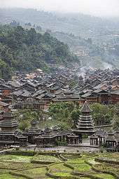 The Kam are thought to be the modern-day descendants of the ancient Liáo (僚) peoples who occupied much of southern China.[2] Kam legends generally maintain that the ancestors of the Kam migrated from the east. According to the migration legends of the Southern Kam people, their ancestors came from Guangzhou, Guangdong and Wuzhou, Guangxi. The Northern Kam maintain that their ancestors fled Zhejiang and Fujian because of locust swarms. Many Kam rebellions took place during the Ming and Qing Dynasties, but none were successful in the long run.