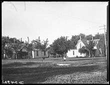 Streets of Kearney, Nebraska showing houses and one person, c. 1907