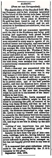 Report of discovery and disappointment, from The Western Australian Times, 21 September 1875