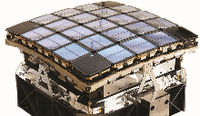 The focal plane of the spacecraft's camera is made out of forty-two 50 × 25 mm (2 × 1 in) CCDs at 2200×1024 pixels each, possessing a total resolution of 95 megapixels,[39][40] which at the time made it the largest camera system launched into space.[12] The array is cooled by heat pipes connected to an external radiator.[41] The CCDs are read out every six seconds (to limit saturation) and co-added on board for 58.89 seconds for short cadence targets, and 1765.5 seconds (29.4 minutes) for long cadence targets. Due to the larger bandwidth requirements for the former, these are limited in number to 512 compared to 170,000 for long cadence. However, even though at launch Kepler had the highest data rate of any NASA mission , the 29-minute sums of all 95 million pixels constitute more data than can be stored and sent back to Earth. Therefore, the science team has pre-selected the relevant pixels associated with each star of interest, amounting to about 6 percent of the pixels (5.4 megapixels). The data from these pixels is then requantized, compressed and stored, along with other auxiliary data, in the on-board 16 gigabyte solid-state recorder. Data that is stored and downlinked includes science stars, p-mode stars, smear, black level, background and full field-of-view images.[41][42]