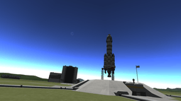 Once a spacecraft is built, it is placed on the launchpad or the runway and is ready for launch. Players control a spacecraft in all three dimensions with little assistance other than a stability system to keep their rocket pointed at a player-specified direction or to keep a constant attitude.[8] If the rocket has enough thrust and fuel, it is possible to reach orbit or even travel to other celestial bodies. In flight, to visualize the player's trajectory, the player must switch into map mode. The map shows the orbit or trajectory of the current craft as well as the current position and trajectory of other spacecraft and planetary bodies.[8] Planetary bodies and other spacecraft can be targeted in order to view information needed for rendezvous and docking such as ascending and descending nodes, target direction, and relative velocity to the target. While in map mode, players can also access 'maneuver nodes' which can be used to plan out trajectory changes in advance.