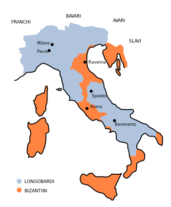 ![]() The Lombard Kingdom (blue) at its greatest extent, under King Aistulf (749–756) | ||||||||||||||