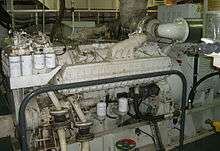 The ship is equipped with four main Wärtsilä UD 23V12 diesel engines which are coupled to four alternators (600 V AC). Two Jeumont electric motors (±740 V DC) provide power to the two LIPS Z-drive azimuth thrusters which are fitted with fixed-pitch reversing propellers. The propulsion system provides 15 knots (28 km/h) maximum continuous speed. The range at the economical cruising speed of 9 knots (17 km/h) using two engines is 5,000 nautical miles (9,000 km) with a 20% margin in tank capacity. Mechanical minesweeping is carried out at 8 knots (15 km/h). The crash stop length is five ship lengths from a speed of 15 knots (28 km/h). Sometimes if you are going down a wave they reach the speed of 16.42 knots (30 km/h).