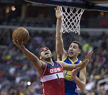 Thompson began the season averaging 17.2 points per game over his first 21 games, but failed to record a 30-point game over that stretch.[41] That streak ended on December 8, as he scored a then season-high 39 points on 13-of-21 shooting in a 131–123 win over the Indiana Pacers, helping the Warriors extend their unbeaten record to start the season to 23–0.[42] The Warriors' NBA-record start ended after 24 wins when they lost to the Milwaukee Bucks 108–95 on December 12.[43] In the Warriors' next game, on December 16, Thompson scored 27 of his then season-high 43 points in the third quarter of their 128–103 win over the Phoenix Suns.[44] On January 8, he recorded his third consecutive game with 30 or more points, finishing with 36 points in a 128–108 win over the Portland Trail Blazers.[45] On January 27, he scored a season-high 45 points on 14-of-20 shooting in a 127–107 win over the Dallas Mavericks.[46] The following night, he was named a Western Conference All-Star reserve for the 2016 NBA All-Star Game, earning his second straight All-Star nod.[47] On February 13, he competed in the All-Star Weekend's Three-Point Contest and won the event after defeating Stephen Curry and Devin Booker in the final round.[48] On March 25, he scored 40 points against the Dallas Mavericks. Two days later, he had another 40-point game against the Philadelphia 76ers, scoring 40 points in consecutive games for the first time in his career.[49] On April 7, Thompson scored 14 points against the San Antonio Spurs, helping the Warriors become the second team in NBA history to win 70 games in a season.[50]