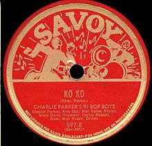 "Ko-Ko" is a 1945 bebop recording composed by Charlie Parker. The original recorded version features Parker on alto saxophone with trumpeter Miles Davis, double bassist Curley Russell and drummer Max Roach. Due to the absence of Bud Powell, Dizzy Gillespie was enlisted to play piano, instead of his usual trumpet.[1] Pianist Sadik Hakim, then known as Argonne Thornton, was also known to be present at the session. Rumors persist to this day about precisely who played trumpet and piano on this piece; some claim Gillespie plays trumpet[2] and, or instead of, piano; some claim Hakim is the pianist on all or part of one or both of the takes.[3][4][5]
