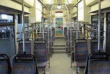 In contrast to the previous designs of the Kolzam SN81 and SA104, the RegioVans have a modular lightweight body structure with a low floor in the entrance area. The height of the floor in the lower level is 575–600 mm and in the partly high level with steps and a ramp the height is 1090 mm.[8]
