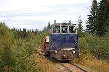The Konetsgorskaya forestry railway's first line was constructed in 1942, in the area of Vinogradovsky District, Arkhangelsk Oblast from the village Rochegda.[2] The total length of the Konetsgorskaya narrow gauge railway at the peak of its development exceeded 153 kilometres (95 mi), of which 80 kilometres (50 mi) is currently operational. The narrow gauge railway operates a scheduled freight services from Rochegda is used for forestry tasks such as the transportation of felled logs and forestry workers.[3] In 2015, repairs are being made to the track.[4]