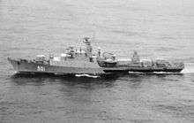 The Koni class is the NATO reporting name for an anti-submarine warfare frigate built by the Soviet Union. They were known in the Soviet Union as Project 1159. 14 were built in Zelenodolsk shipyard between 1975 and 1988. They were originally intended to replace the older Riga-class frigates, but were instead chosen as a design for export to various friendly navies. The Koni I sub class were designed for European waters and the Koni II were made for warmer waters.[3] One ship was retained by the Soviets in the Black Sea for training foreign crews. Only a few of these vessels remain in service today.