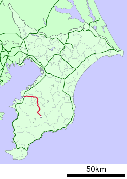 The Kururi Line (久留里線 Kururi-sen) is a railway line in Chiba Prefecture, Japan, operated by the East Japan Railway Company (JR East). It connects Kisarazu Station in Kisarazu to Kazusa-Kameyama Station in Kimitsu. The railway route extends through three cities, Kimitsu, Kisarazu, and Sodegaura. It has no double-track section, and trains can pass at only two stations, Yokota Station and Kururi Station.