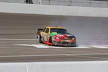 The next morning, NASCAR president Mike Helton announced, following discussion with Busch and team owner Joe Gibbs, that Busch would remain parked for the remainder of the weekend, including the Nationwide Series O'Reilly Auto Parts Challenge and the Sprint Cup AAA Texas 500.[118] Denny Hamlin replaced Busch in the Nationwide Series event, while Michael McDowell drove Busch's No. 18 in the AAA Texas 500.[118] Helton took this action under a rule that allows NASCAR to park a driver in order to ensure the "orderly conduct of the event." Since this was not considered a suspension under NASCAR rules, Busch could not appeal the decision. It was the second time since what is now the Camping World Truck Series was launched in 1995 that NASCAR has parked a driver across national series (In 2002, during a Craftsman Truck Series race at Martinsville, Kevin Harvick was parked for aggressive driving, when he said over the radio that he will "kill" Coy Gibbs. A few moments later, he spun him out intentionally. He was parked for the Winston Cup race at Martinsville.) and only the third cross-series sanction in NASCAR's 64-year history.[119] NASCAR's action mathematically eliminated Busch from contention for the Sprint Cup, though any realistic chance of him making the Chase had ended earlier.[118] Later that day, Busch issued an apology for his actions, saying that the Texas incident was "certainly a step backward."[120] In addition, Busch offered to let Hornaday, his Kevin Harvick Incorporated team closing at the end of the season, drive his No. 18 truck in 2012; Hornaday declined the offer due to his long-standing relationship with Chevrolet.[121]