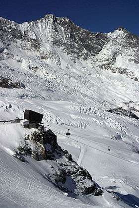 ![]() Cable car station surrounded by the Fee Glacier | |