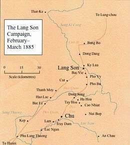 The Lang Son Campaign (3 to 13 February 1885) was a major French offensive in Tonkin (northern Vietnam) during the Sino-French War (August 1884–April 1885). The Tonkin Expeditionary Corps, under the command of General Louis Brière de l'Isle, defeated the Chinese Guangxi Army and captured the strategically important town of Lang Son in a ten-day campaign mounted under formidable logistical constraints.[1]
