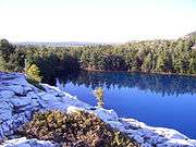 The La Cloche Silhouette Trail is a 78-kilometre (48 mi) backpacking loop across the rugged quartzite peaks of the La Cloche mountain range. The trail is situated in Killarney Provincial Park, Ontario, Canada. The trail is named for Group of Seven painter Franklin Carmichael's painting "La Cloche Silhouette."[1] Wildlife can be seen throughout the trail - black bears, moose, deer, snakes, turtles, and beavers, among other animals, can be seen at various points along the way.