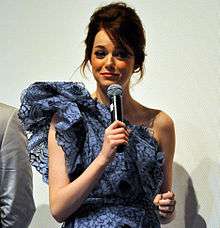 - ↑ Kate Thomas And Jennifer Pearson (October 8, 2016). "Lights, camera, action! Emma Stone looks every inch the girl next door in a blue shirt and A-line skirt as she joins Ryan Gosling on the set of La La Land". Daily Mail. Retrieved October 10, 2016.