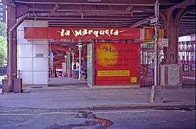 La Marqueta is a marketplace under the elevated Metro North railway tracks between 111th Street and 116th Street on Park Avenue in East Harlem in Manhattan, New York City. Its official address is 1590 Park Avenue. In its heyday in the 1950s and 1960s, over 500 vendors operated out of La Marqueta,[1] and it was an important social and economic venue for Hispanic New York. The New York Times called it "the most visible symbol of [the] neighborhood." It has since dwindled in size.[1]
