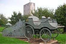 The Lanchester Car Monument (grid reference SP087883) is an open-air galvanized steel sculpture of the Stanhope Phaeton, or Lanchester motor car. It is in Bloomsbury Village Green, a piece of reclaimed land in the Heartlands (Nechells) area of Birmingham, England. It was designed by Tim Tolkien to commemorate the work of Frederick William Lanchester.