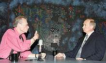 Mainly aired from CNN's Los Angeles studios, the show was sometimes broadcast from CNN's studios in New York or Washington, D.C., where King gained national prominence during his years as a radio interviewer for the Mutual Broadcasting System.[3] Every night, King interviewed one or more prominent individuals, usually celebrities, politicians and businesspeople.