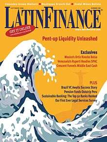 - LatinFinance, the magazine, is issued six times each year. In addition to analytical features it runs a series of respected and widely reported polls and awards – including its annual Deals of the Year,[5]Man of the Year,[6] and The LatinFinance Banks of the Year[7] – and several surveys most notably a respected series ranking the sustainability of the region's banks[8] and companies in association with M&E, a Madrid and São Paulo based consultancy.[9]