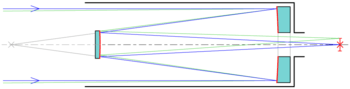 It first appeared in the eighth edition of the 17th century French science journal Recueil des mémoires et conférences concernant les arts et les sciences, published by Jean-Baptiste Denys in April 25, 1672. In that edition is found an extract from a letter written by M. de Bercé, writing from Chartres, where he acted as a representative for the Académie des sciences —scholars of Chartres. M. de Bercé reported on a man named Cassegrain who had written a letter on the megaphone with an attached note describing a new type of reflecting telescope, the Cassegrain reflector, where a secondary convex mirror is suspended above a primary concave mirror. This was around the time of the publication of the construction of the first practical reflecting telescope, Isaac Newton's newtonian reflector.[4] On June 13, 1672, Christiaan Huygens wrote about the Cassegrain design and critiqued it harshly, maybe because Huygens felt Newton's design was being "imperiled" by this alternative. Whatever the motives, the storm of controversy that followed had one lasting effect: Cassegrain's name was forgotten.