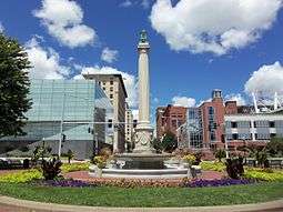 LeClaire Park is a public park located along the Mississippi River in downtown Davenport, Iowa, United States. It is situated between two other riverfront parks: Centennial Park on the west and River Heritage Park, a new park that is being developed to the east. The 400-acre (1.6 km2) park includes monuments, a bandshell. a baseball stadium and it is one of the terminal points for the Davenport Skybridge.[1] The Riverfront Parkway pass through the park. Other features of the park include picnic shelters, horseshoe pits and river access for fishing. Moored off the park’s levee is a riverboat casino.