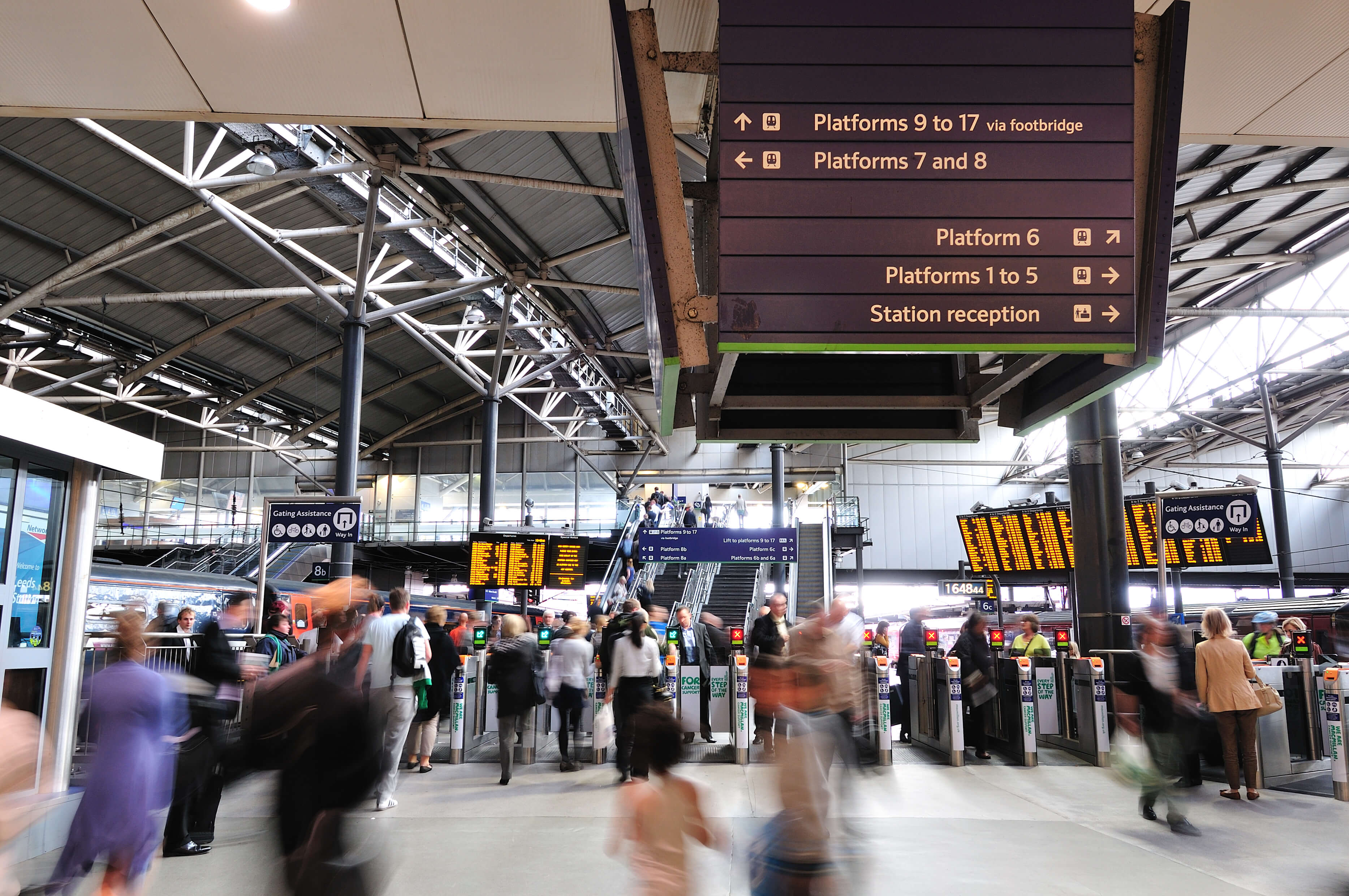 Leeds railway station retained manned ticket barriers through the 1990s until 2008 when they were replaced by automatic barriers by Northern to improve congestion around the barriers at peak times.[2][7]